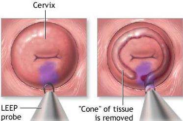 - LEEP (loop electrosurgical excision procedure) — A wire loop carrying electrical current cuts away tissue. Often both diagnostic and therapeutic in one step.